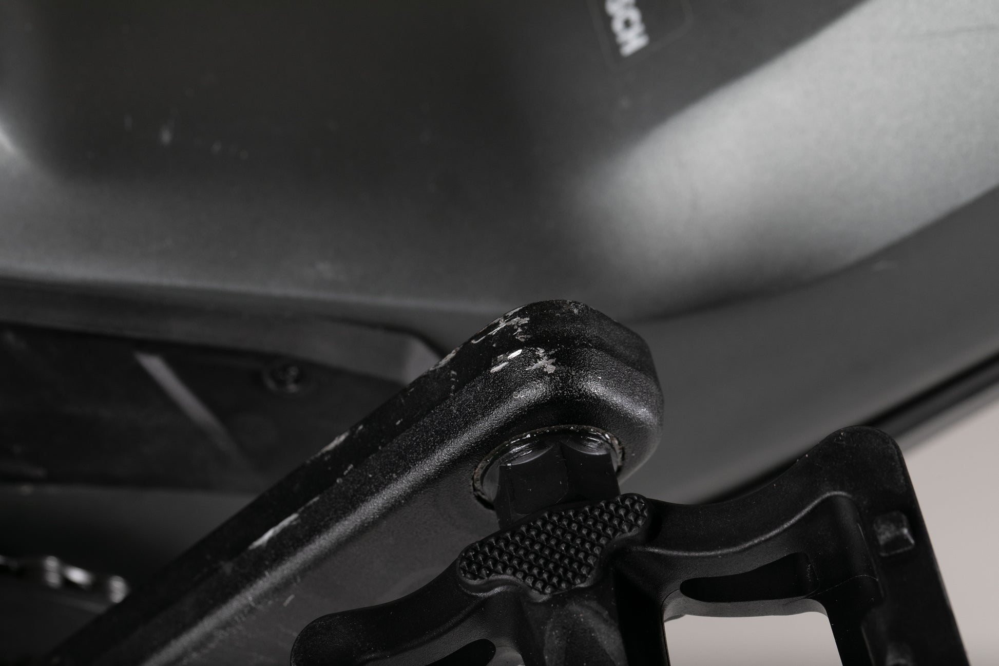 Tämä yksilö on hyvässä, kilometreihin nähden normaalia paremmassa kunnossa. Normaalia pintanaarmua löytyy rungosta, haarukoista sekä poljinkammista. Latausportin suoja on irronnut, porttia suojaa tarrakiinnitteinen teippi.