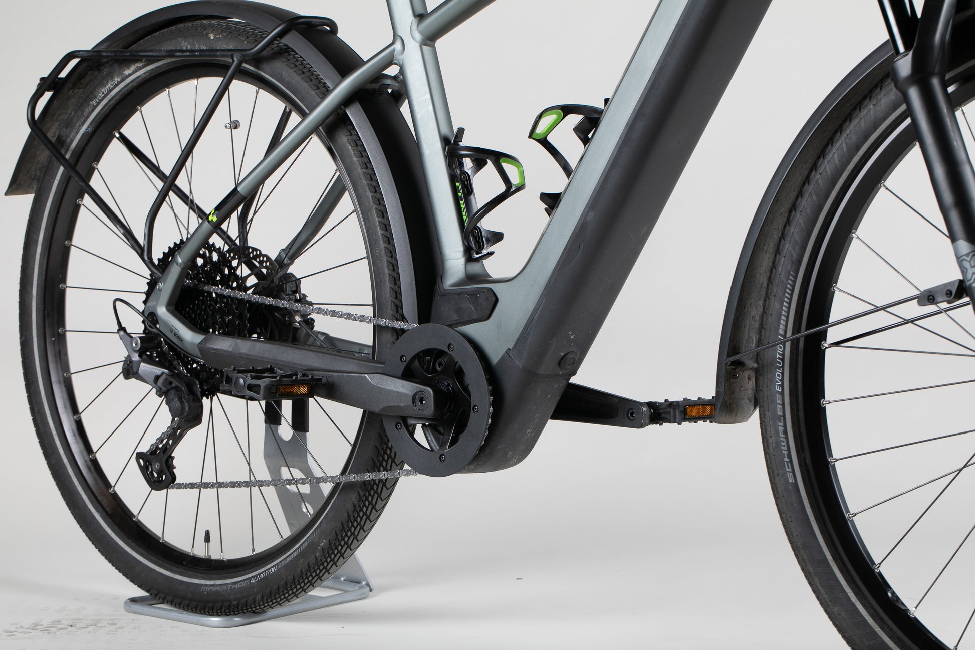 Pyörän kaikki mekaaniset osat on tarkistettu ja säädetty sähköpyörämekaanikon toimesta. Akun, moottorin ja näyttöpäätteen kunto on varmistettu, ja niiden ohjelmistot on päivitetty.