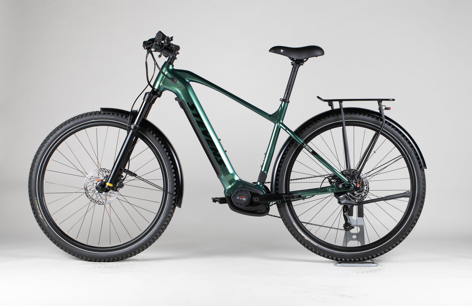 Stevens E-Hazard – Sähköavusteinen pyörä työmatkoille ja kevyille maastoreiteille. Mukava ajoasento ja vakaa ajotuntuma tekevät ajamisesta miellyttävää niin kaupungissa kuin sorateilläkin.