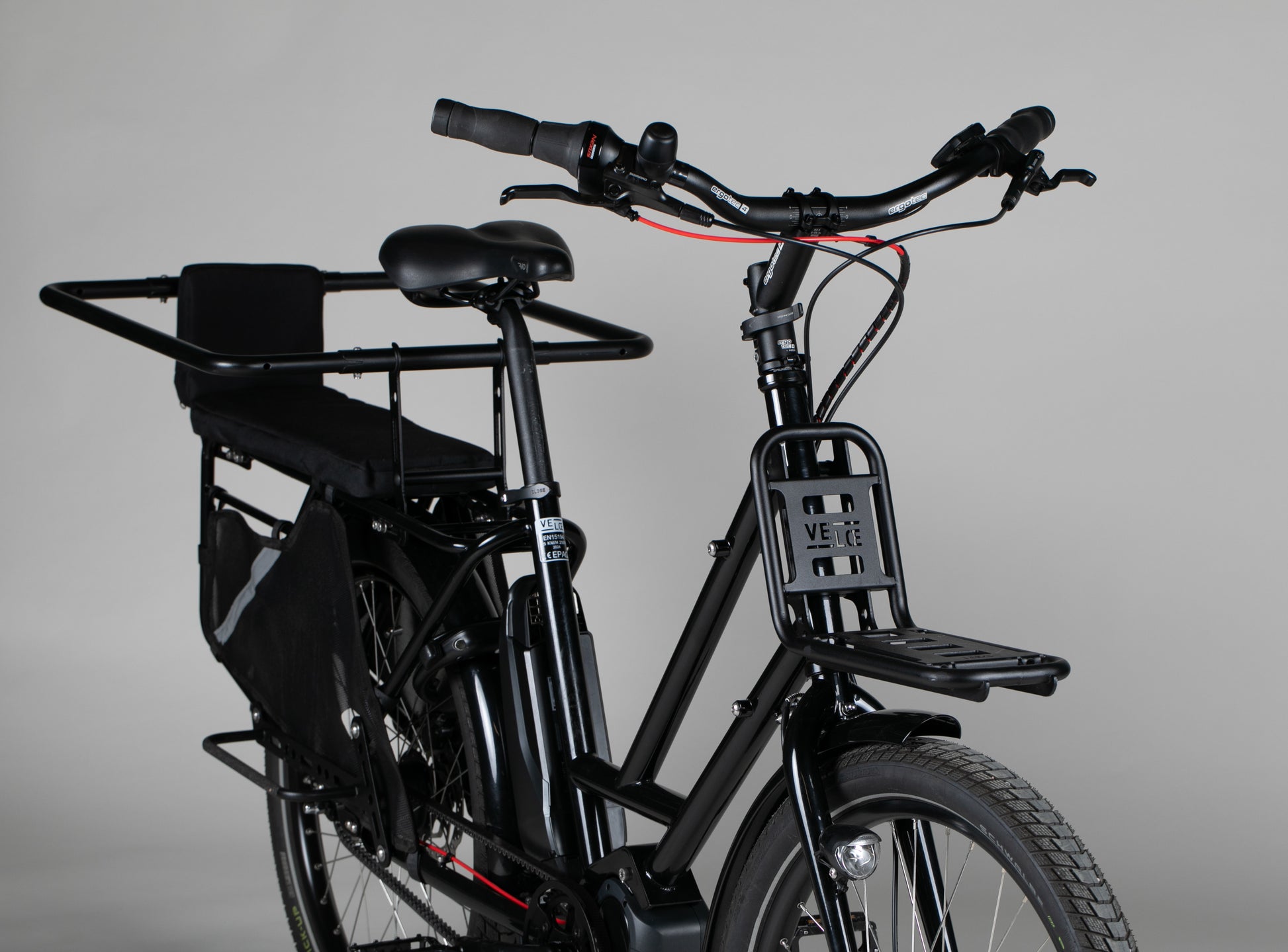 - Säädettävä ohjaustangon korkeus (Ergotech Up & Down), pieni etuteline, valot (Busch & Müller)